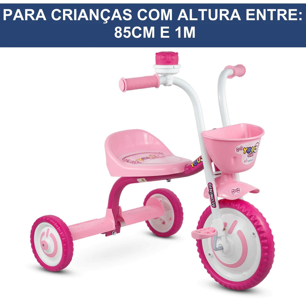 TRICICLO MOTOCA INFANTIL PARA CRIANÇA ACIMA 18 MESES NATHOR YOU 3 GIRL ROSA COM CESTA CESTINHA MENINA DE 85CM A 1 METRO