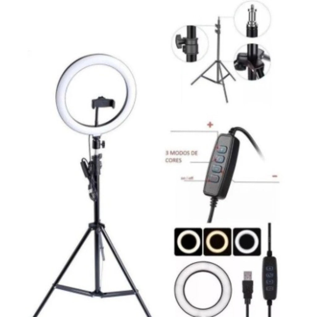Ring Light Iluminador 10 Polegadas Com Tripé De 2.10 Metro MarisaStore